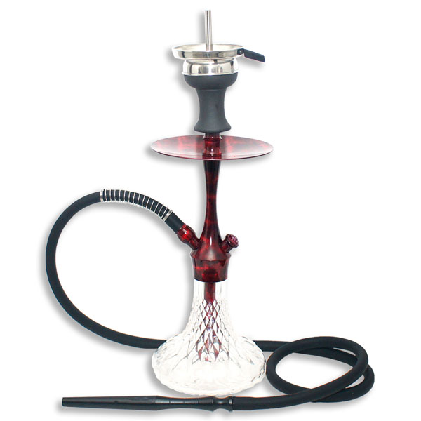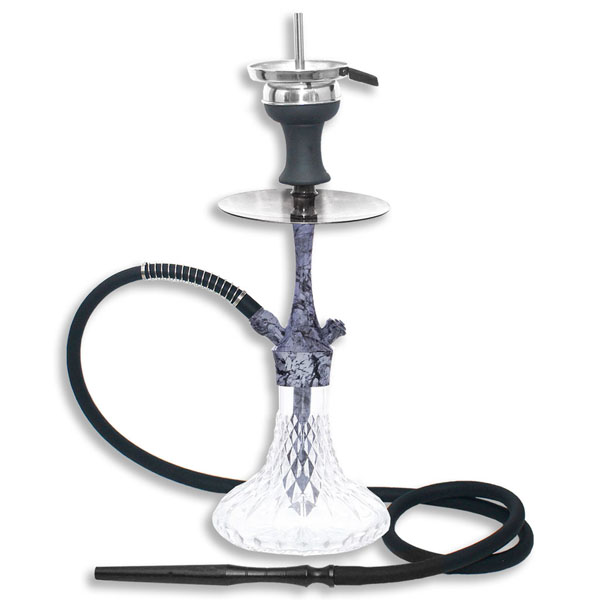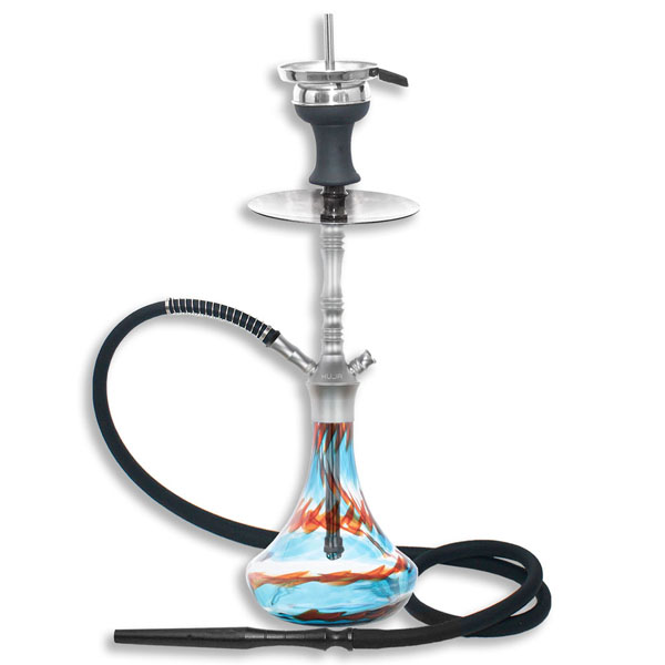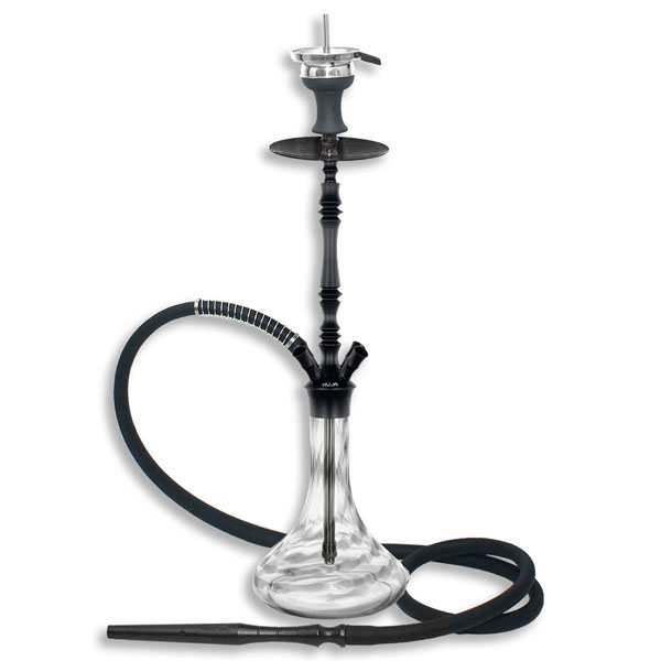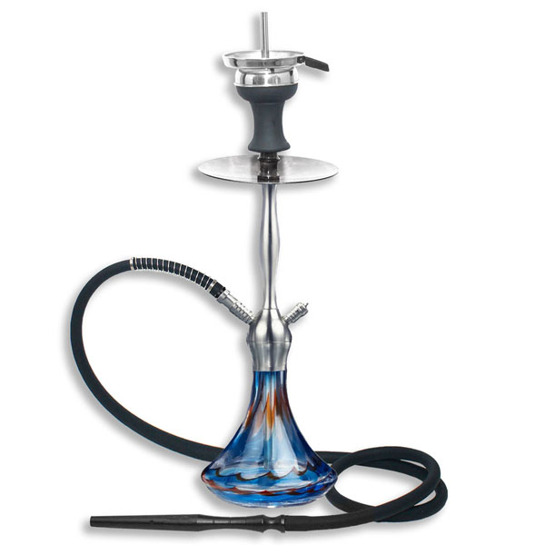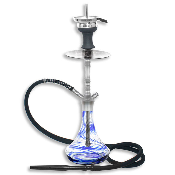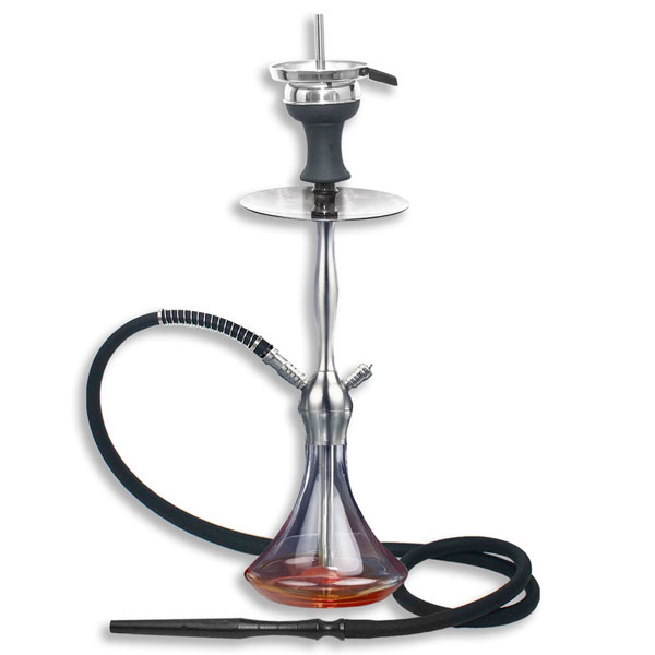 Waterpijp uit de Aladin Alux Serie. Aluminium waterpijp met silconenslang en bewerkt glas, compleet met mockingbird.