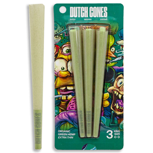 Voorgerolde King size vloei met tips, hennep (groen), blister 3 stuks. Display 50 blisters.