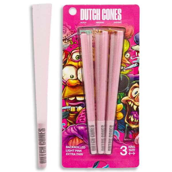 Voorgerolde King size vloei met tips, roze, blister 3 stuks. Display 50 blisters.