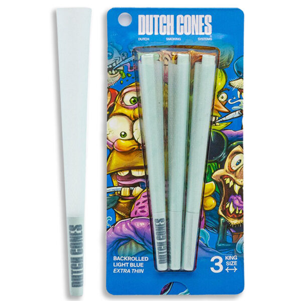 Voorgerolde King size vloei met tips, blauw, blister 3 stuks. Display 50 blisters.