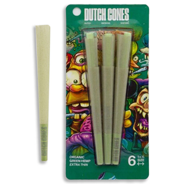 Voorgerolde 1¼ vloei met tips, hennep (groen), blister 6 stuks. Display 50 blisters.