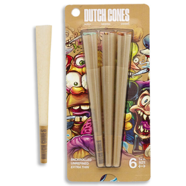 Voorgerolde 1¼ vloei met tips, ongebleekt, blister 6 stuks. Display 50 blisters.