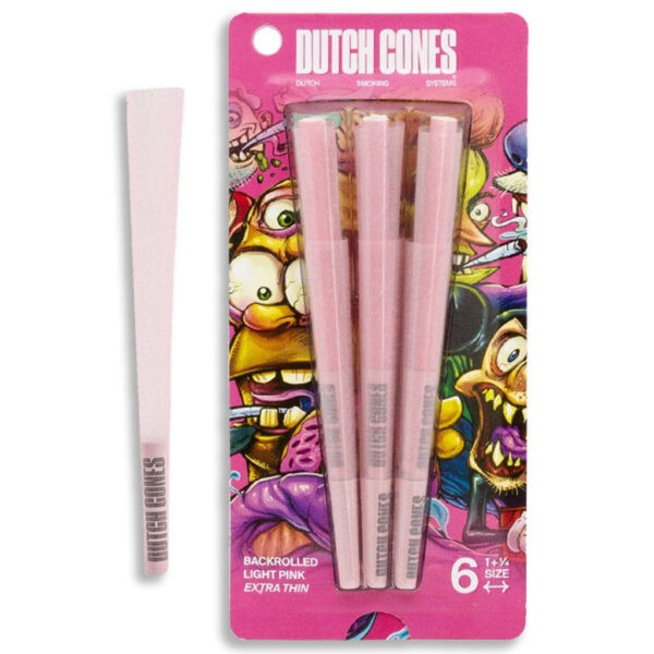 Voorgerolde 1¼ vloei met tips, roze, blister 6 stuks. Display 50 blisters.