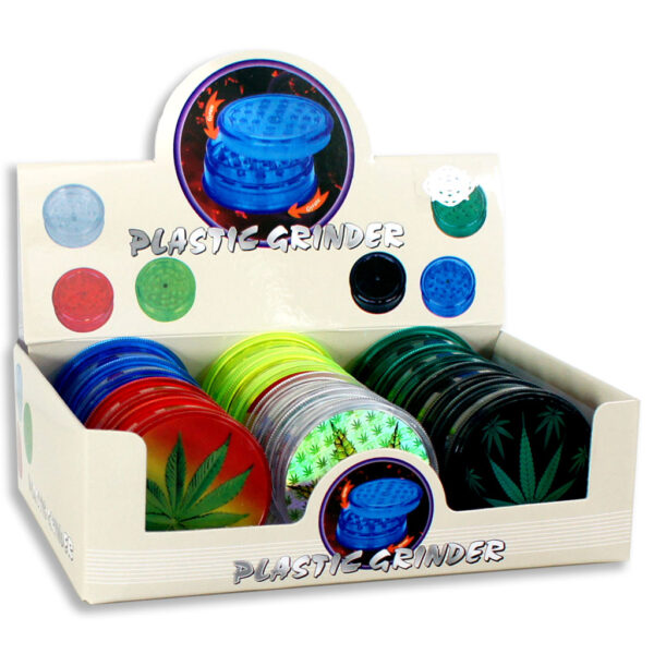 Plastic grinder transparant in 6 kleuren. Display van 12 stuks.