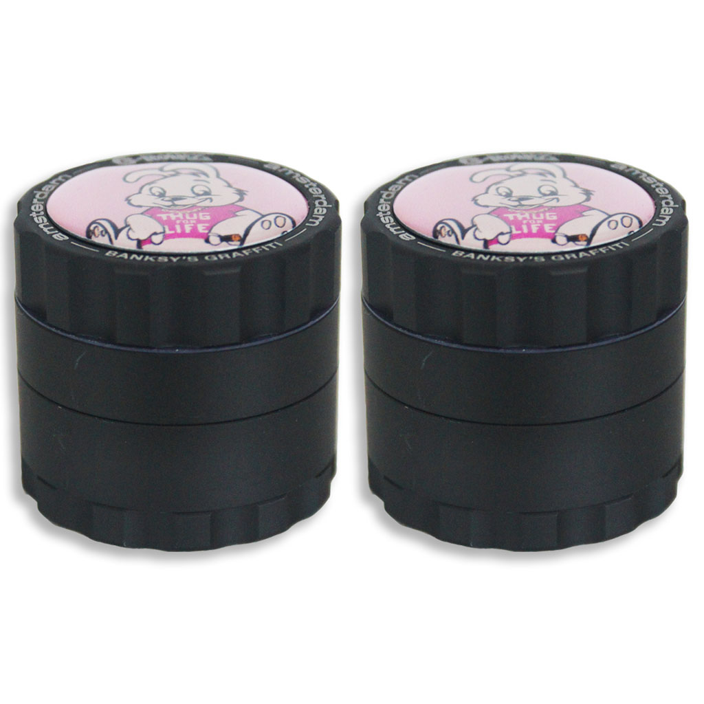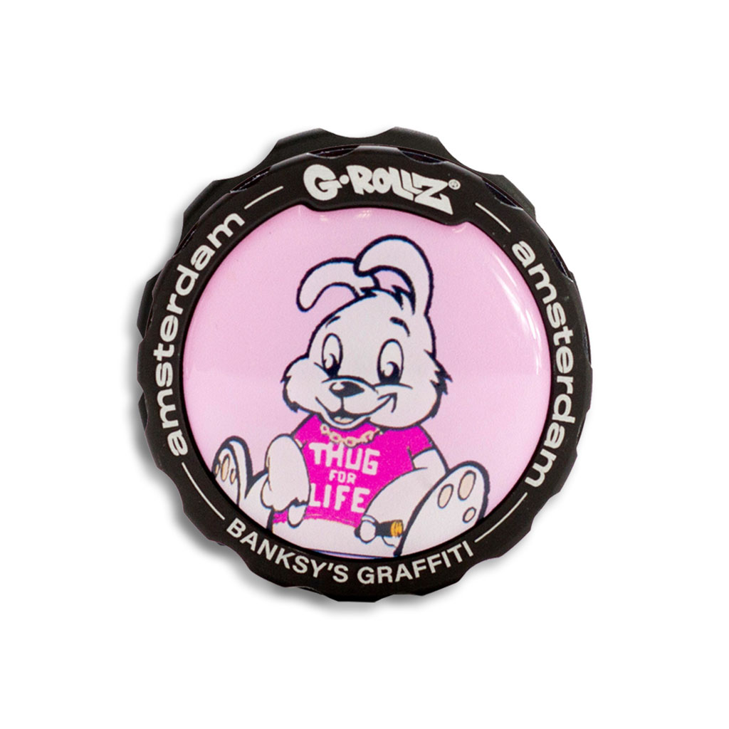 Metalen grinder van G-Rollz. Speciale uitgave Banksy. Per stuk verpakt. Display van 6 stuks.