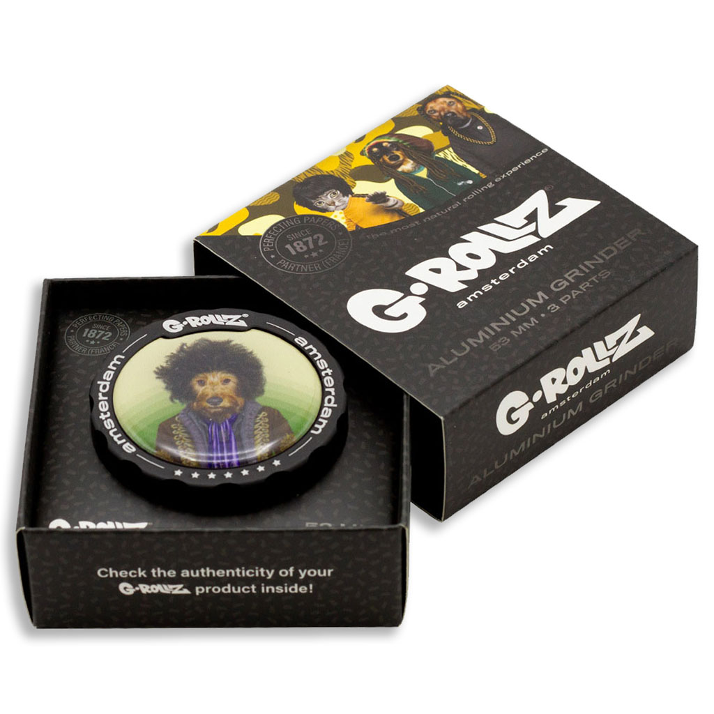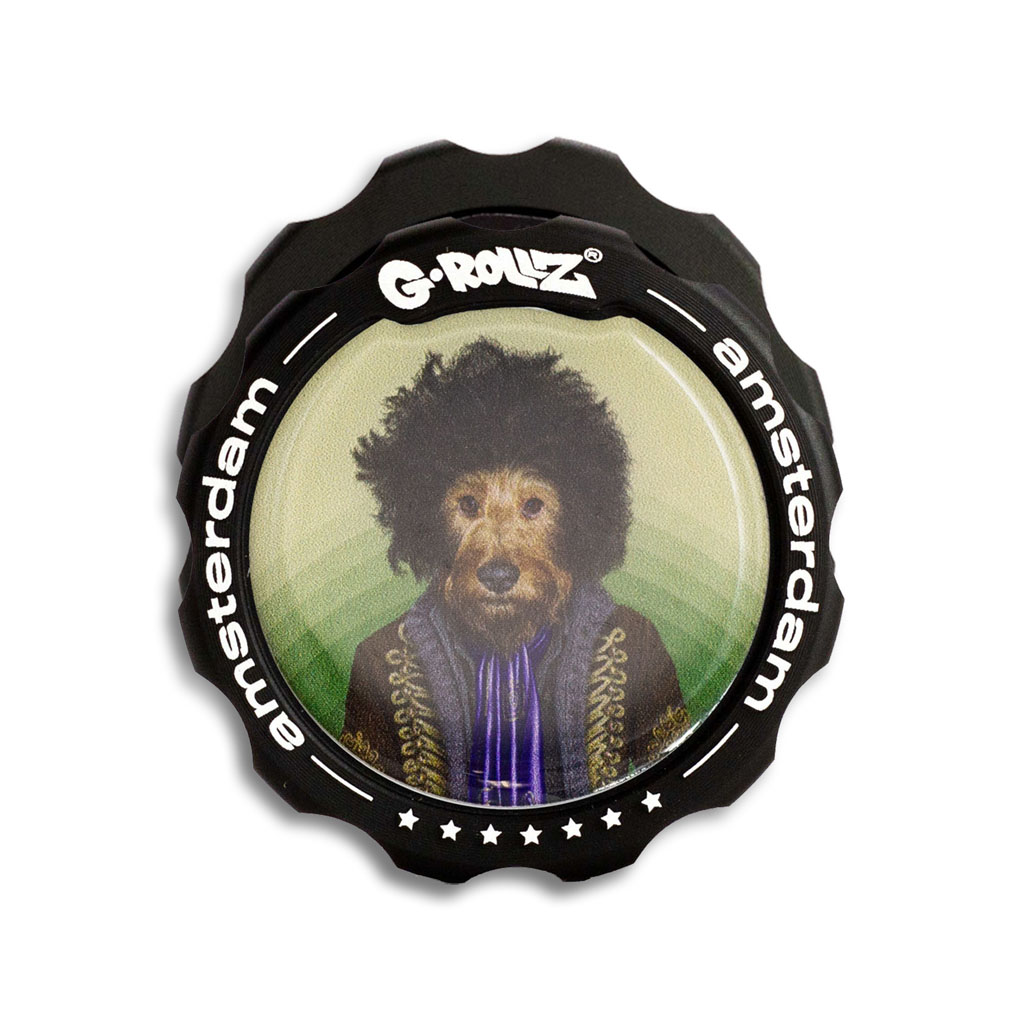 Metalen grinder van G-Rollz. Speciale uitgave Pets Rock. Per stuk verpakt. Display van 6 stuks.